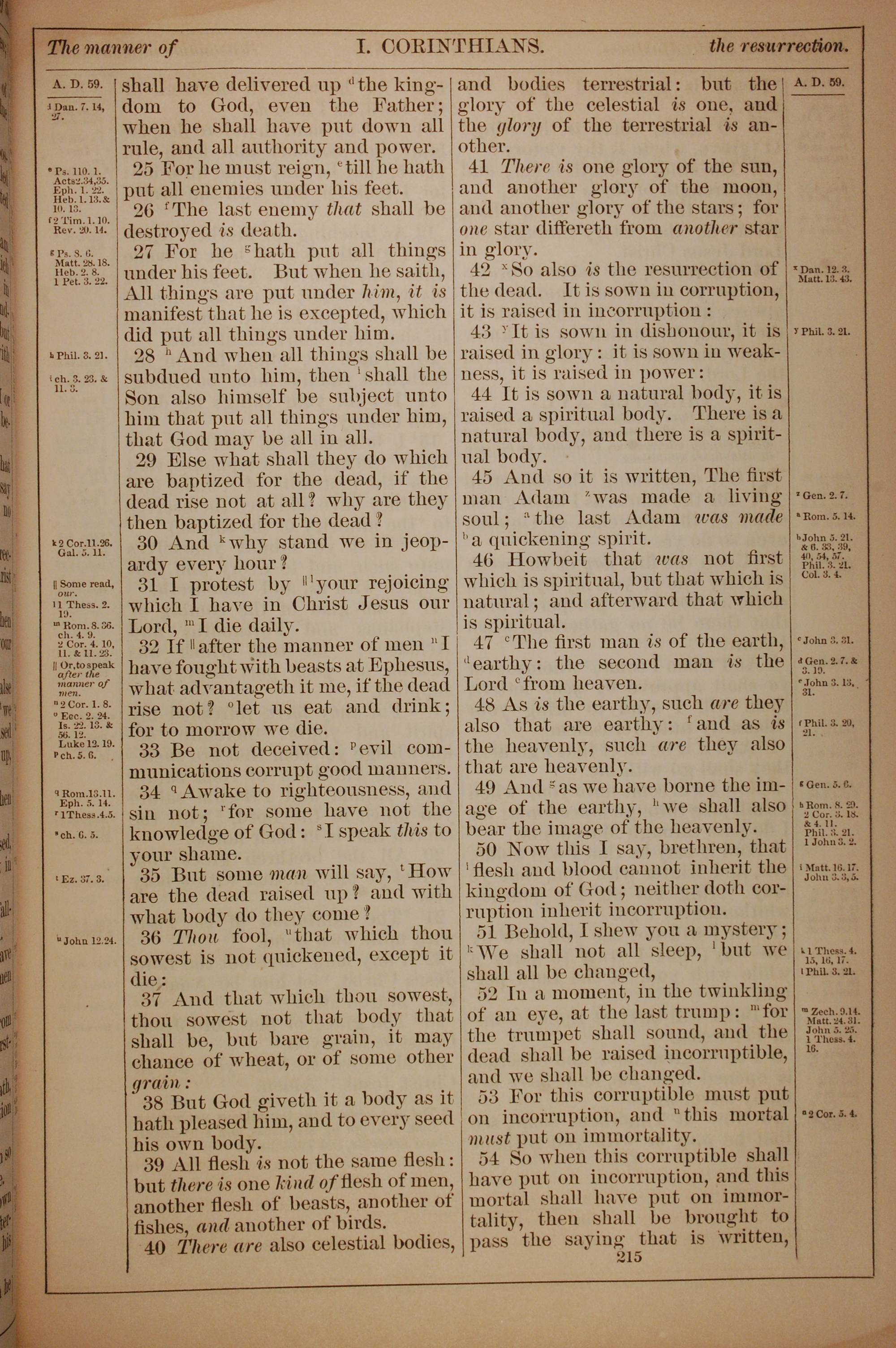 1882年Holy Bible 哥林多前书 15 章 25 节到 15 章 54 节