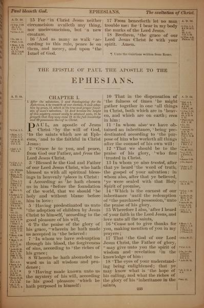 1882年Holy Bible 以弗所书 1 章 1 节到 1 章 18 节