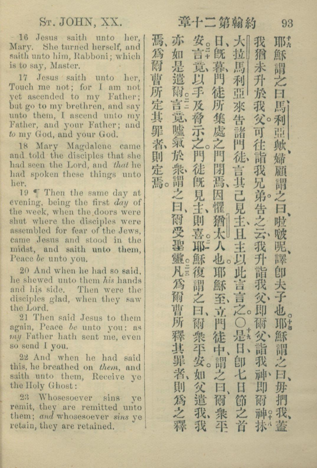 1883年约翰传福音书 约翰福音 20 章 16 节到 20 章 23 节