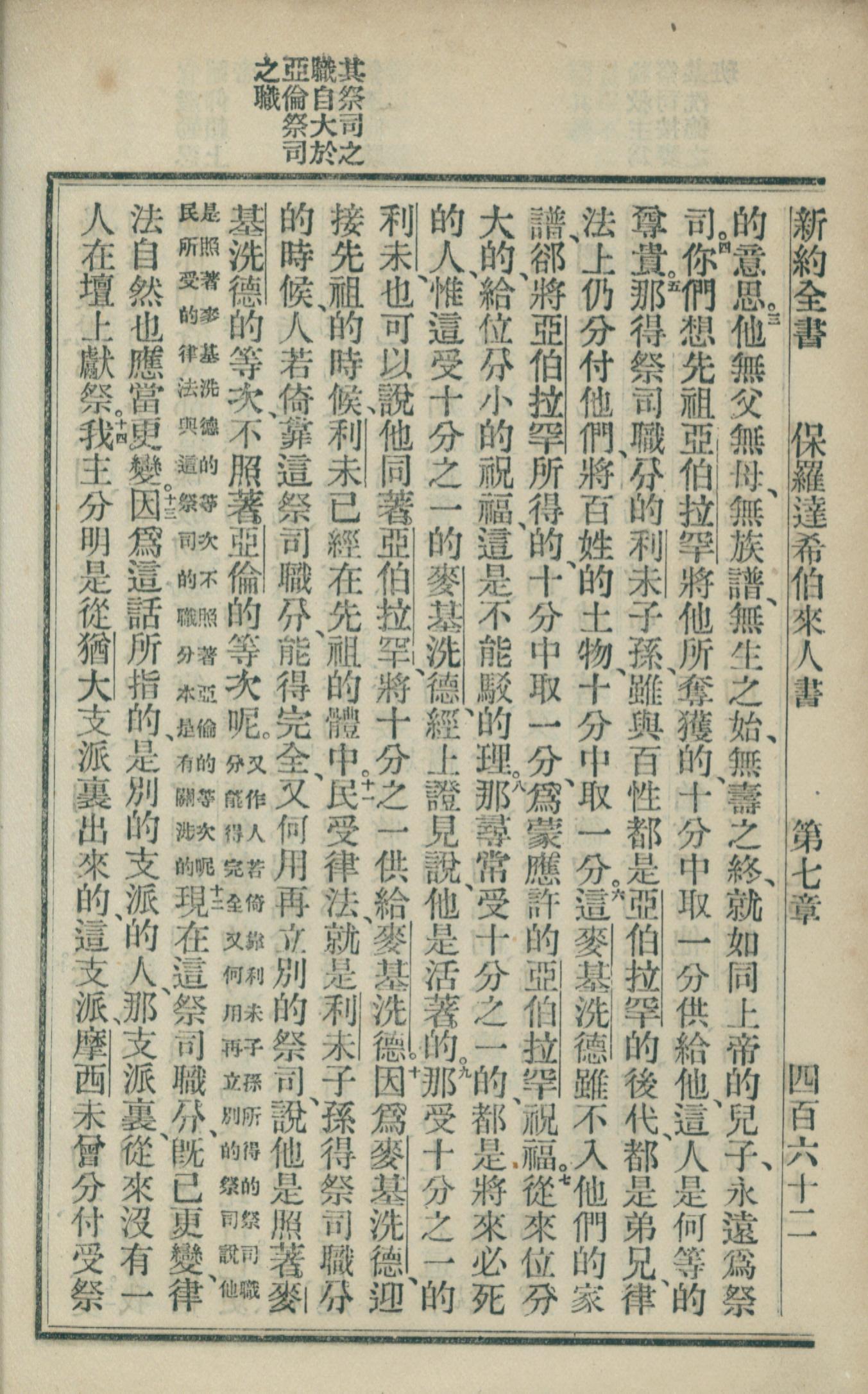 1902年新约全书 希伯来书 7 章 3 节到 7 章 14 节