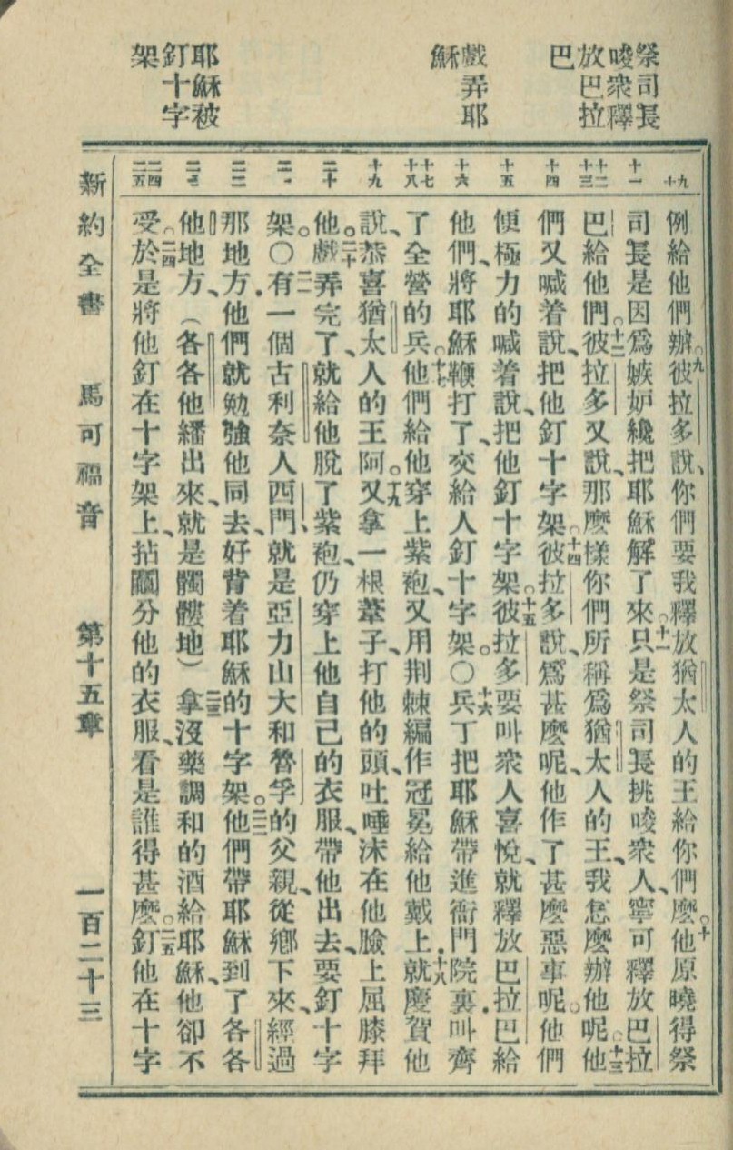 1936年新约全书 马可福音 15 章 9 节到 15 章 25 节