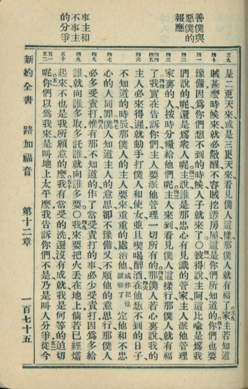 1936年新约全书 路加福音 12 章 39 节到 12 章 52 节
