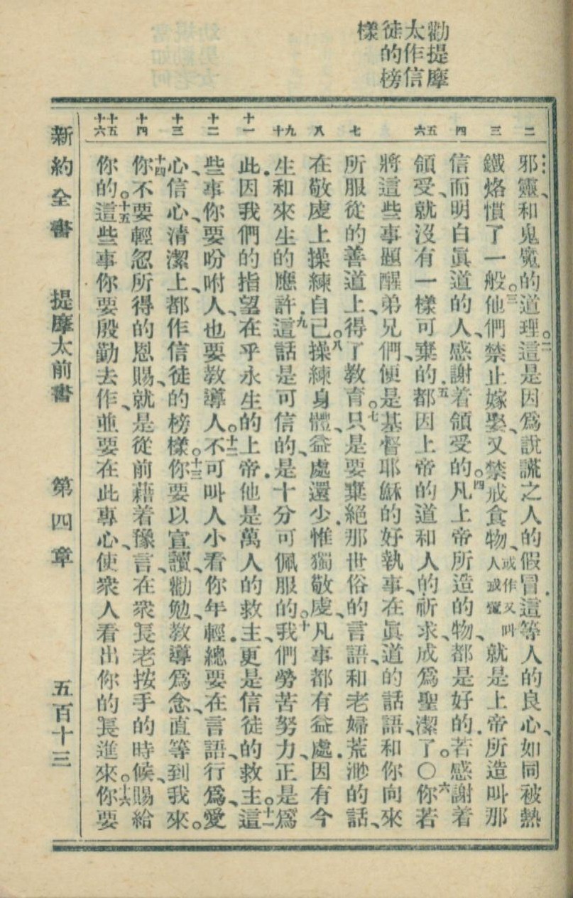 1936年新约全书 提摩太前书 4 章 2 节到 4 章 15 节