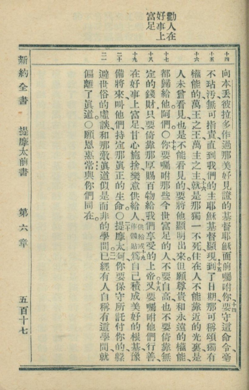1936年新约全书 提摩太前书 6 章 14 节到 6 章 21 节