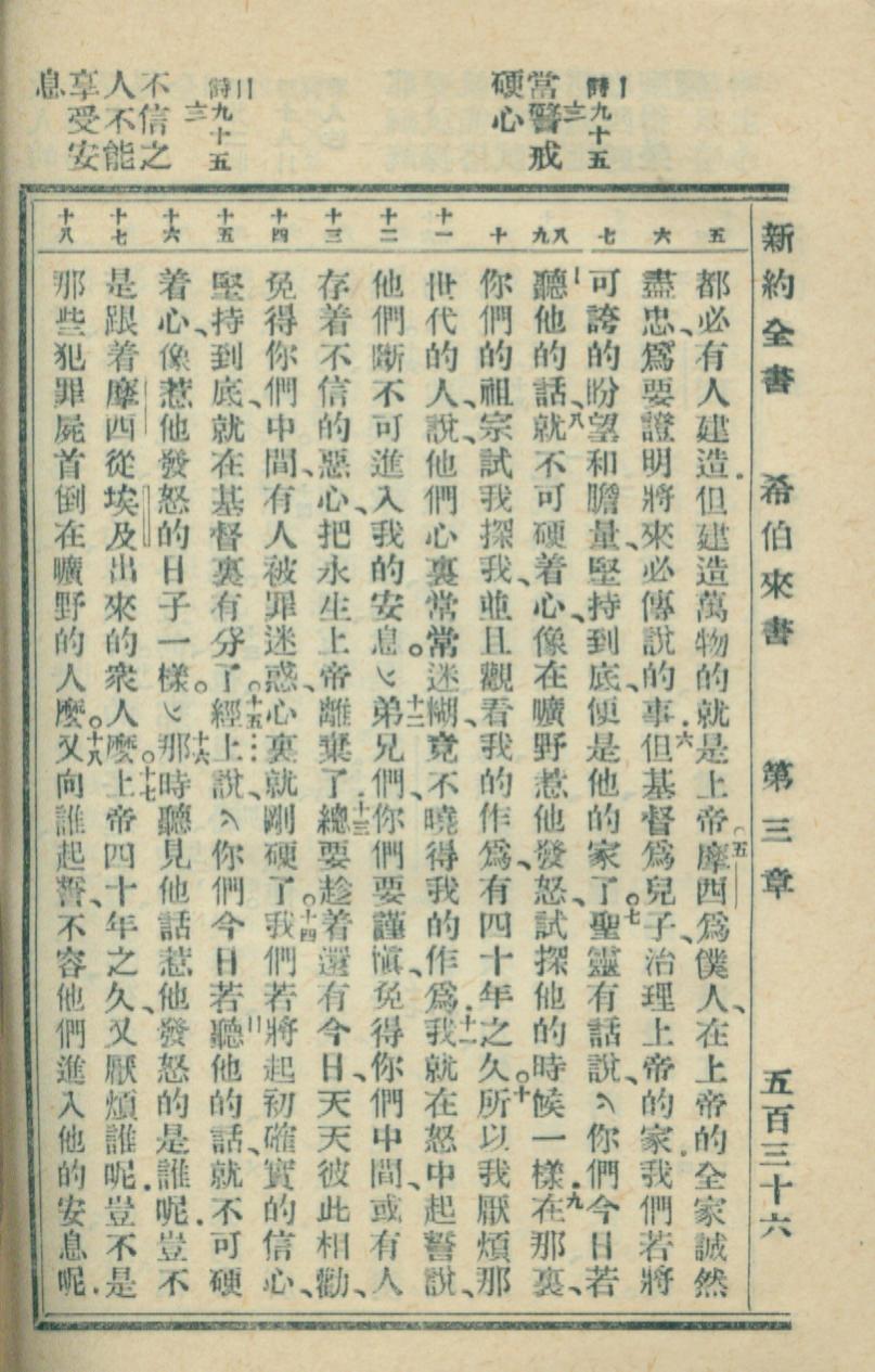 1936年新约全书 希伯来书 3 章 5 节到 3 章 18 节