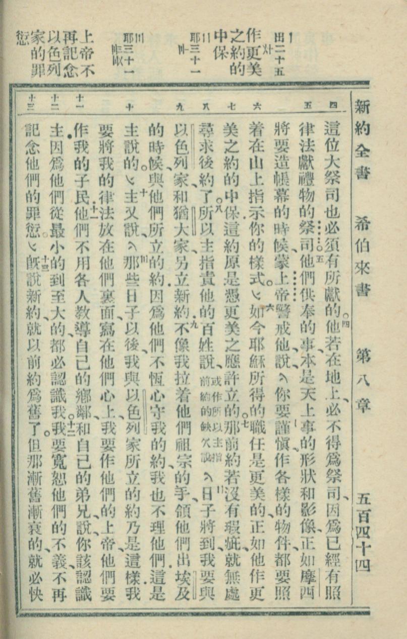 1936年新约全书 希伯来书 8 章 4 节到 8 章 13 节