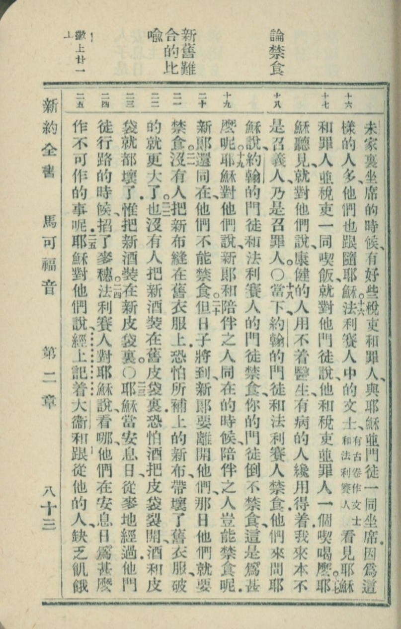 1936年新约全书 马可福音 2 章 16 节到 2 章 25 节