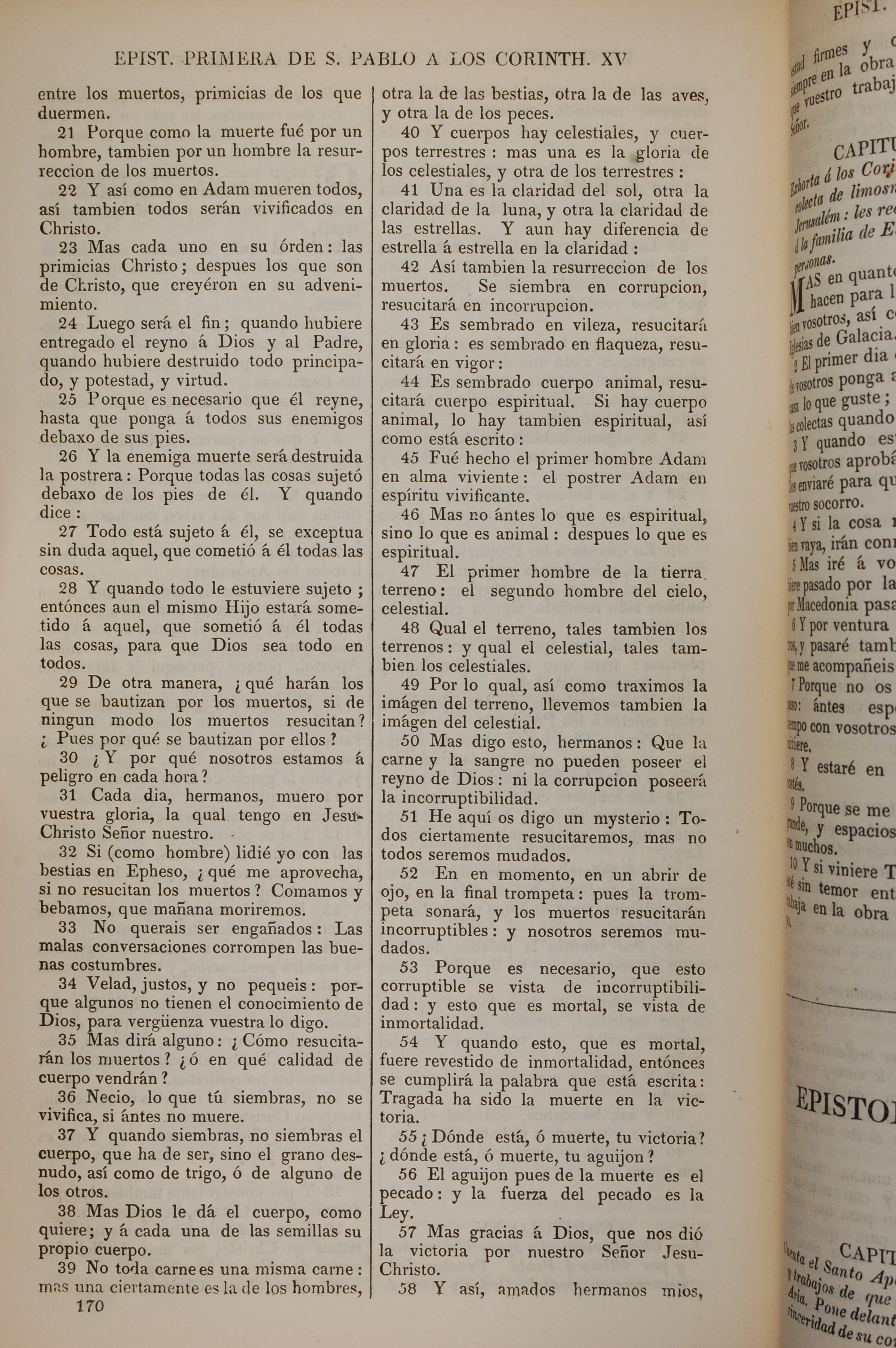 1858年La Biblia 哥林多前书 15 章 21 节到 15 章 58 节
