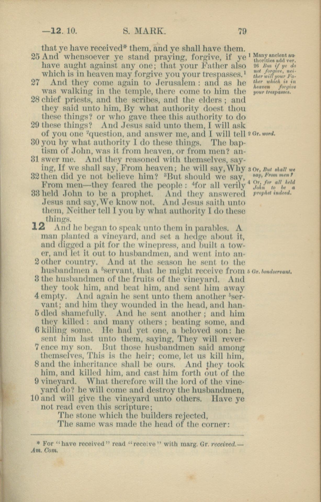1881年New Testament 马可福音 11 章 25 节到 12 章 10 节