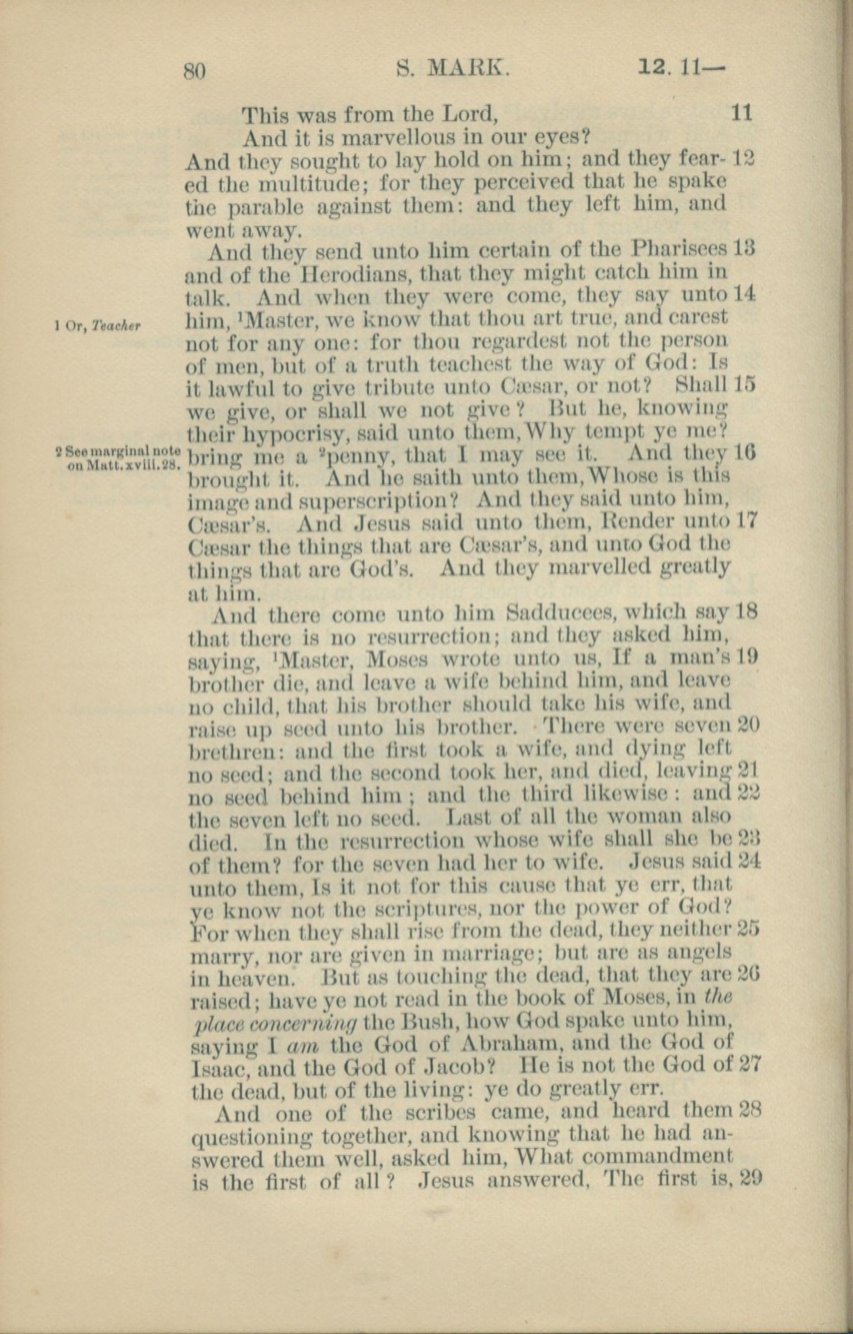 1881年New Testament 马可福音 12 章 11 节到 12 章 29 节