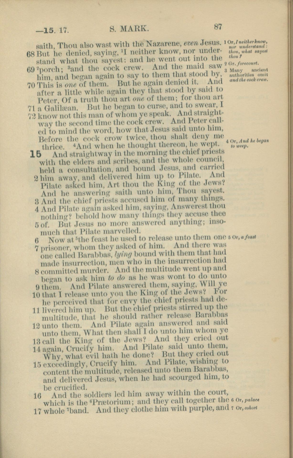1881年New Testament 马可福音 14 章 68 节到 15 章 17 节