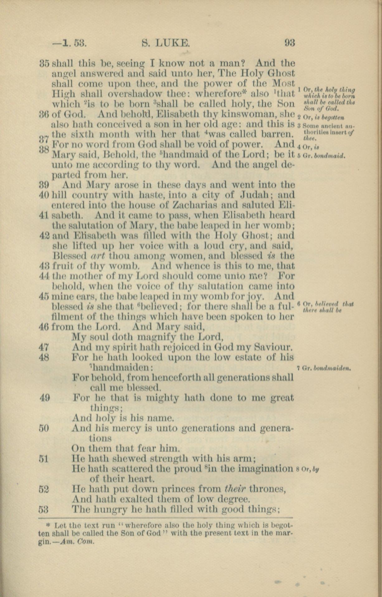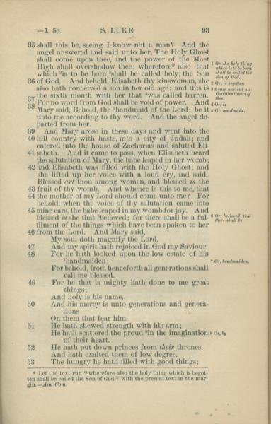 1881年New Testament 路加福音 1 章 35 节到 1 章 53 节