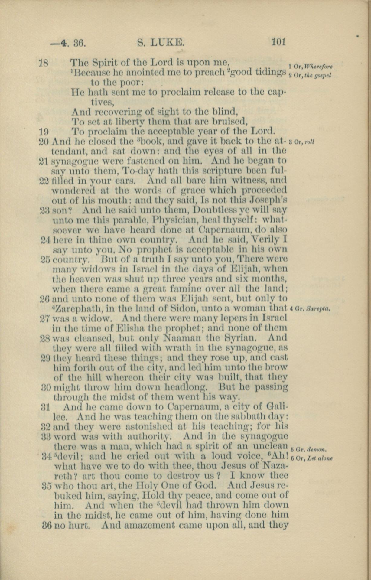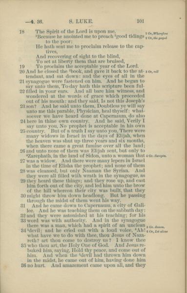 1881年New Testament 路加福音 4 章 18 节到 4 章 36 节