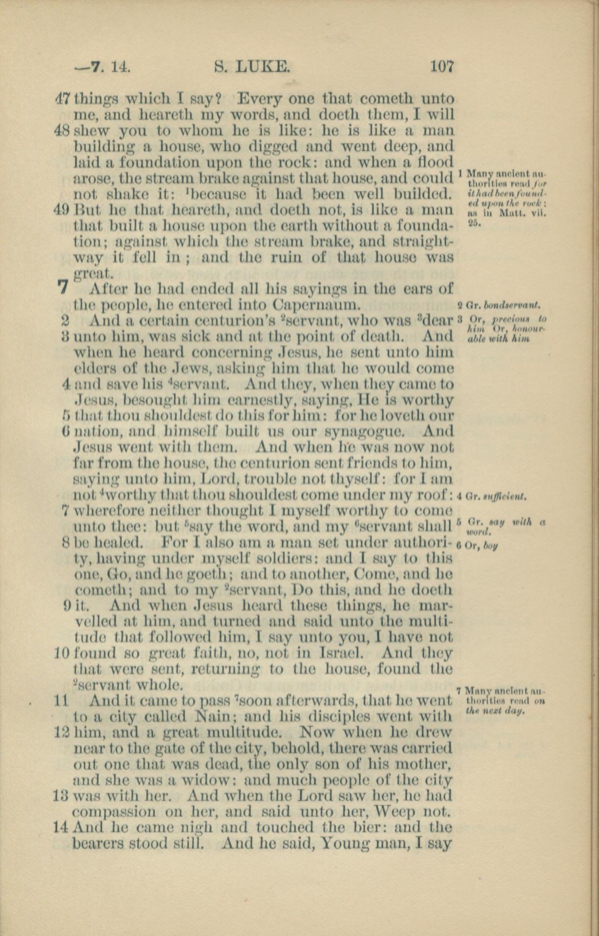 1881年New Testament 路加福音 6 章 47 节到 7 章 14 节
