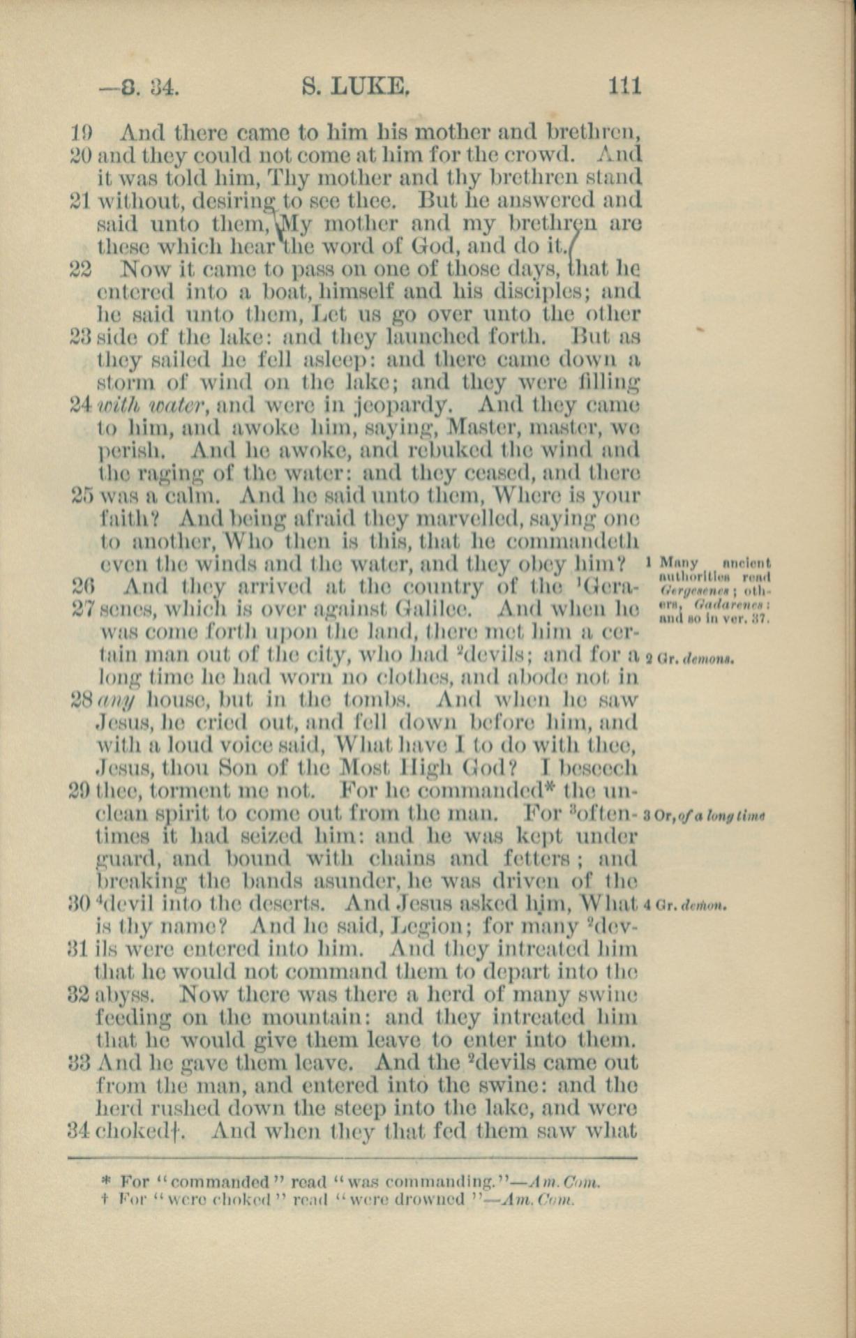 1881年New Testament 路加福音 8 章 19 节到 8 章 34 节