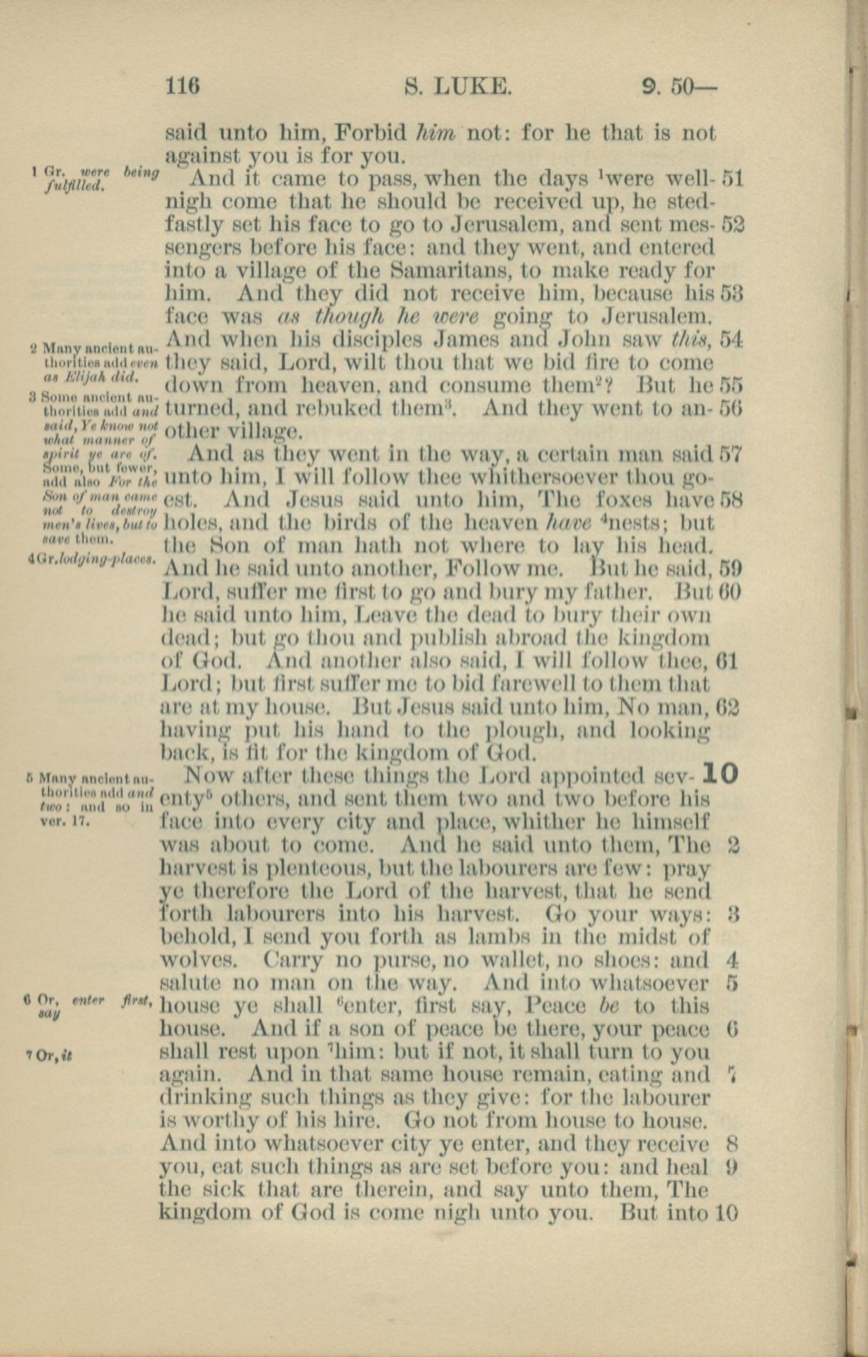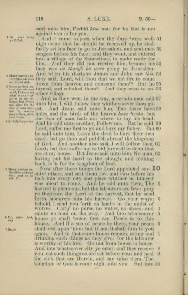 1881年New Testament 路加福音 9 章 51 节到 10 章 10 节