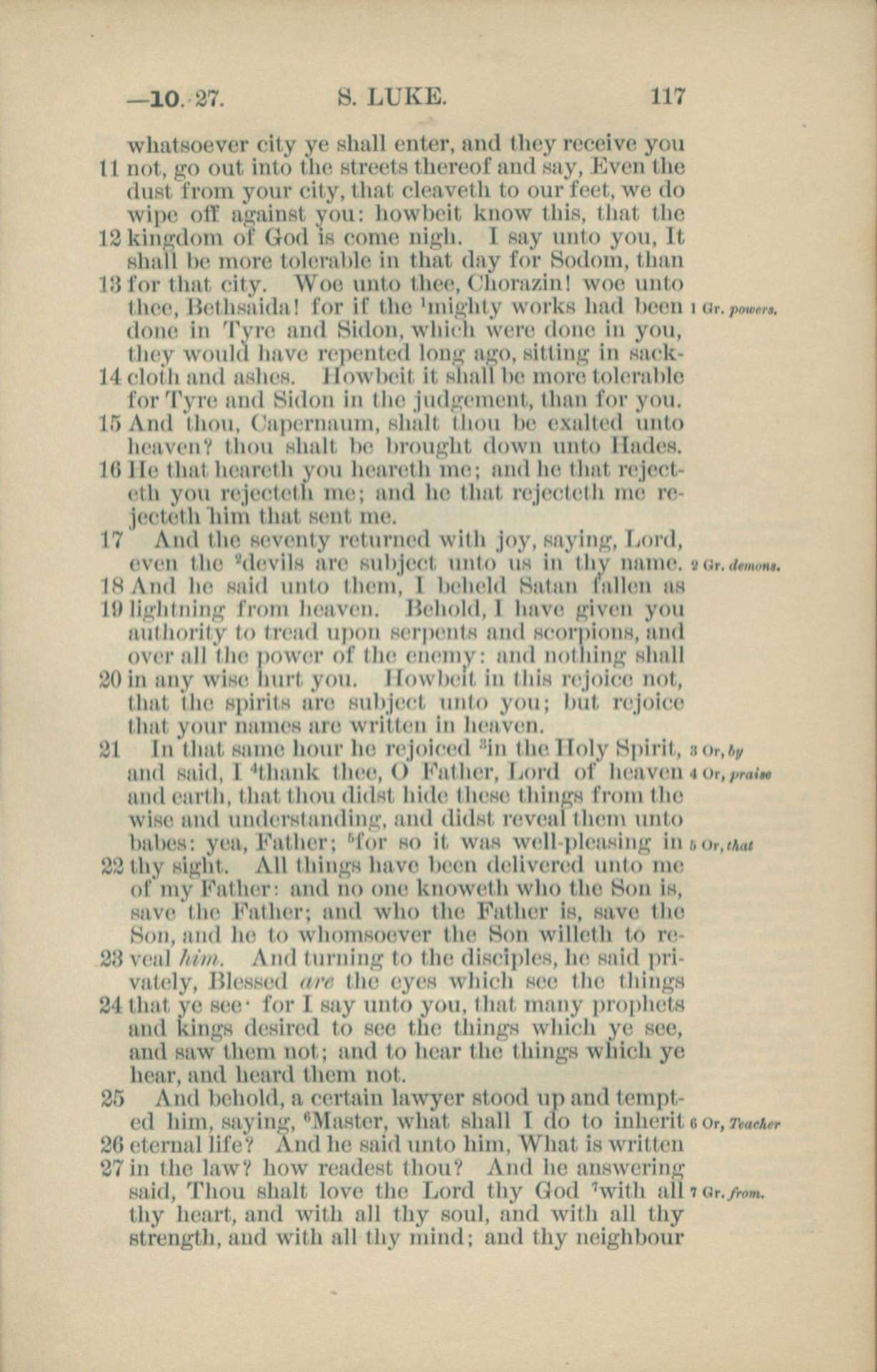 1881年New Testament 路加福音 10 章 11 节到 10 章 27 节