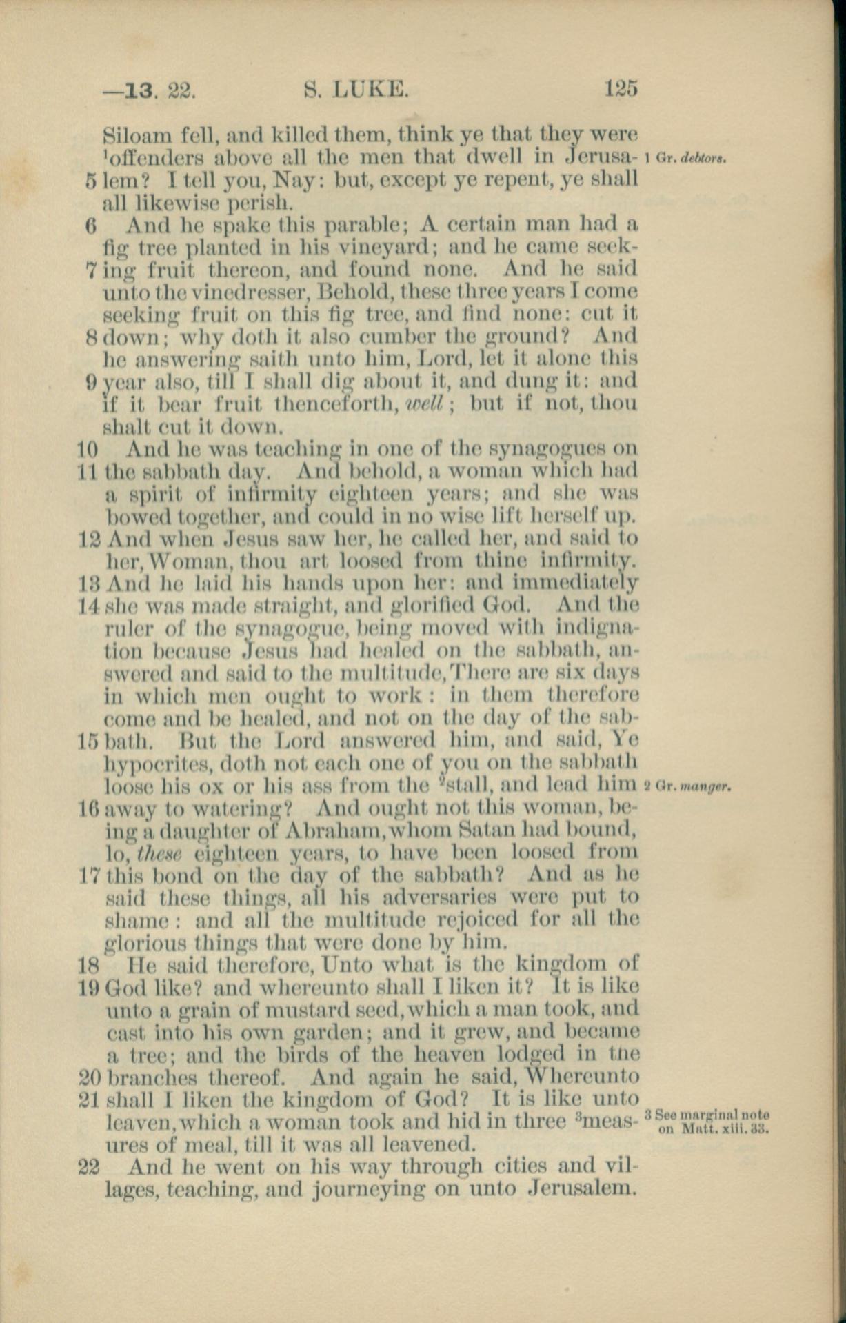 1881年New Testament 路加福音 13 章 5 节到 13 章 22 节