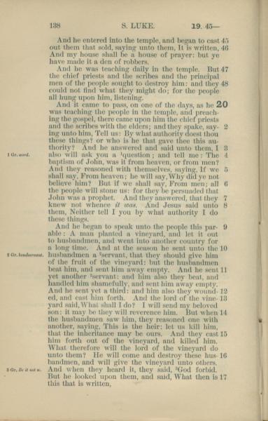 1881年New Testament 路加福音 19 章 45 节到 20 章 17 节