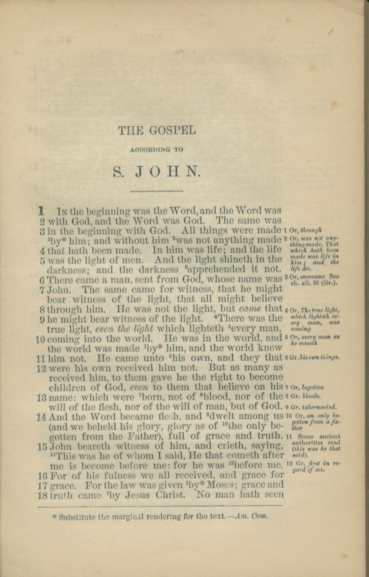 1881年New Testament 约翰福音 1 章 1 节到 1 章 18 节