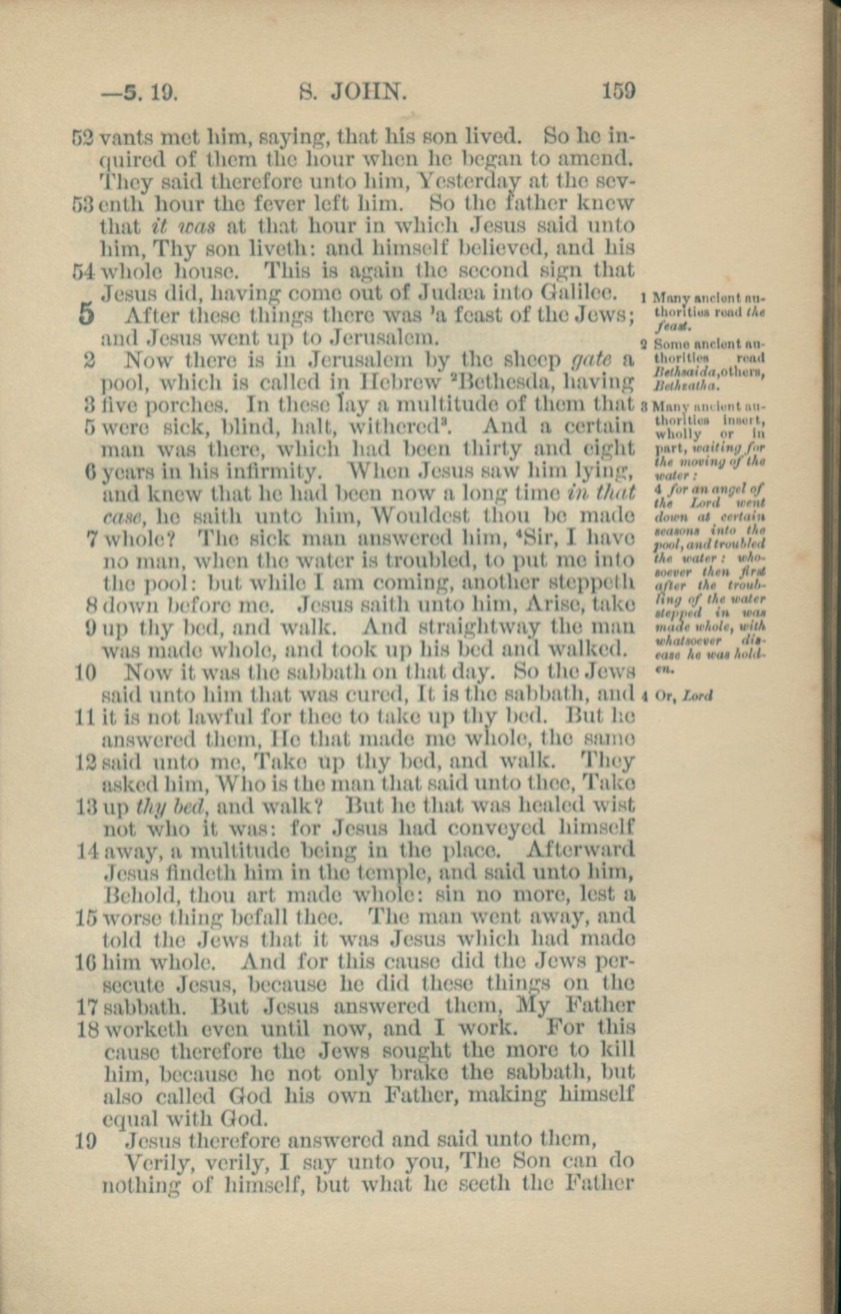 1881年New Testament 约翰福音 4 章 52 节到 5 章 19 节