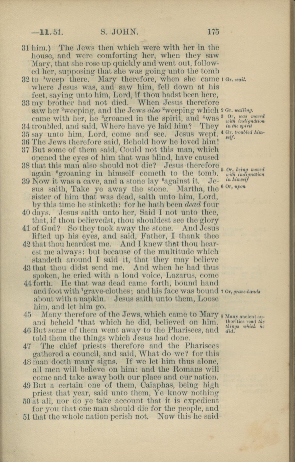 1881年New Testament 约翰福音 11 章 31 节到 11 章 51 节