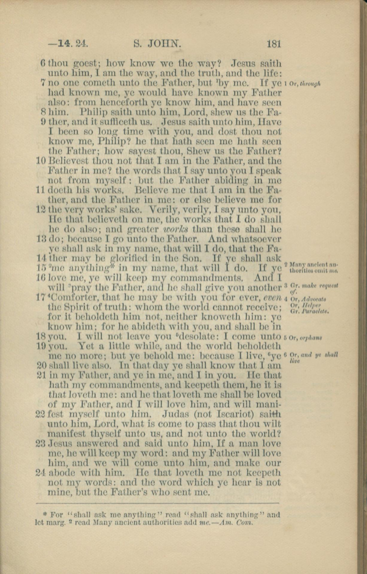 1881年New Testament 约翰福音 14 章 6 节到 14 章 24 节