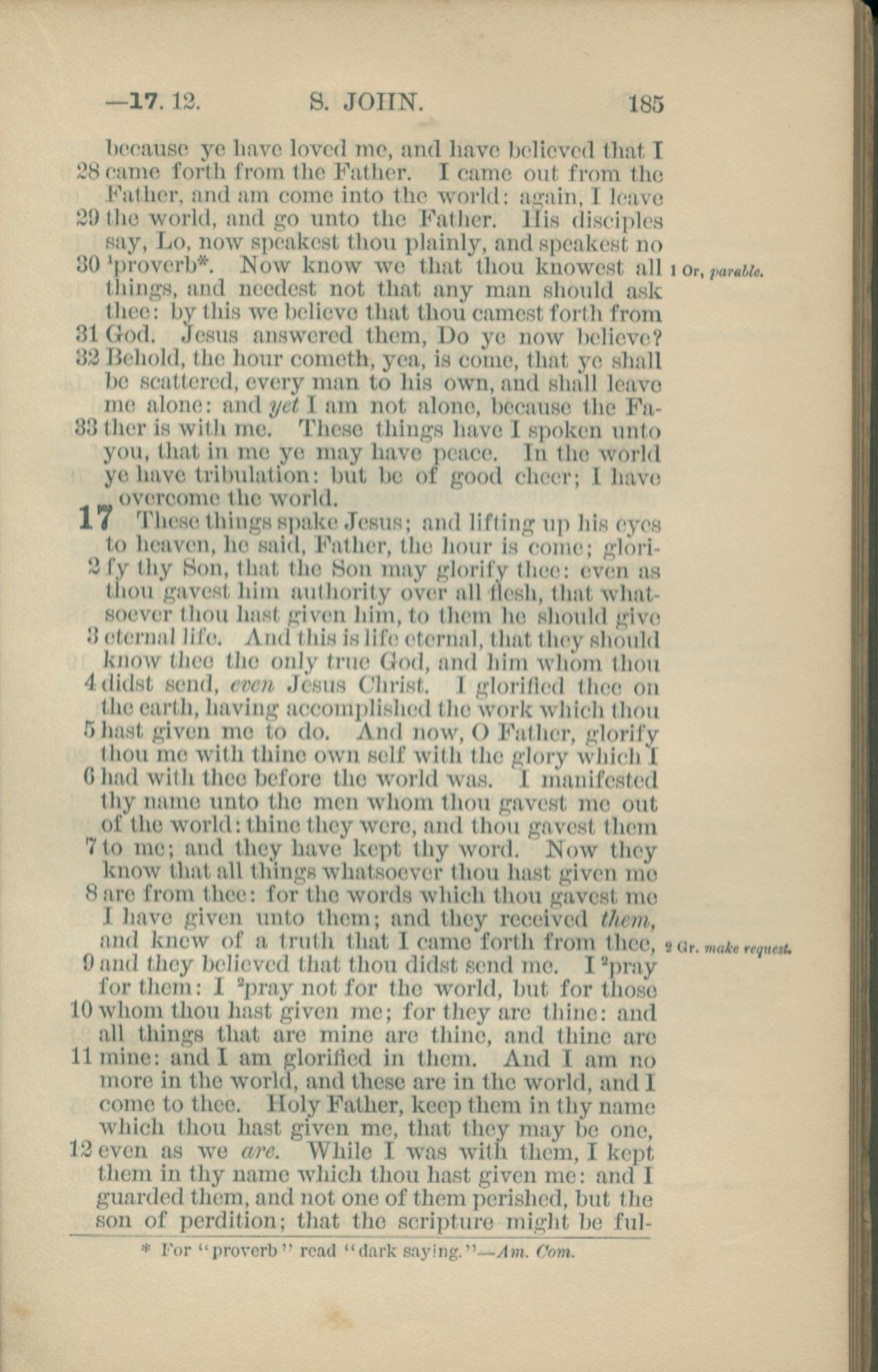 1881年New Testament 约翰福音 16 章 28 节到 17 章 12 节