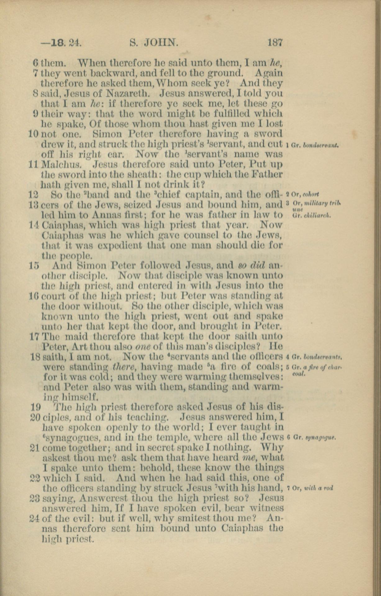 1881年New Testament 约翰福音 18 章 6 节到 18 章 24 节