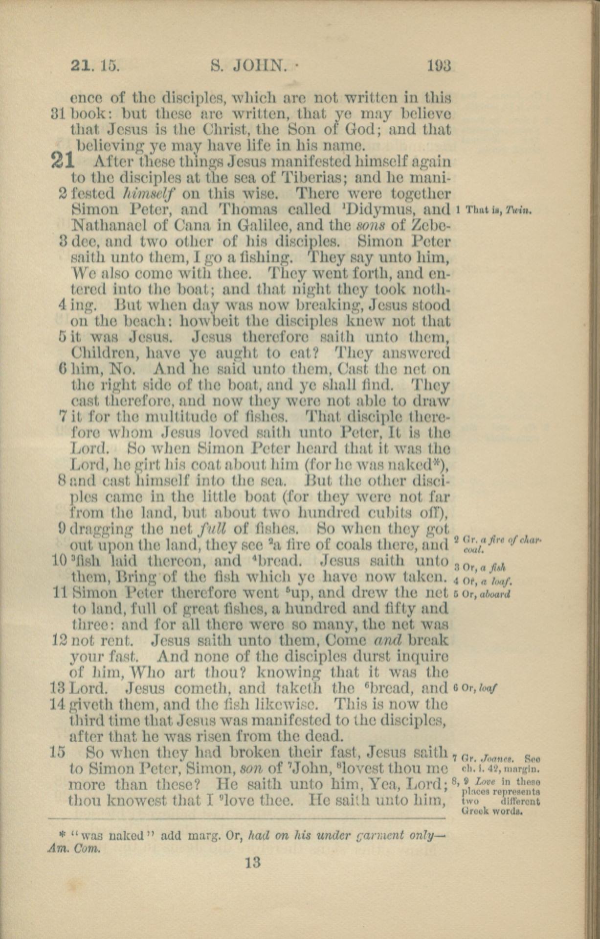 1881年New Testament 约翰福音 20 章 31 节到 21 章 15 节