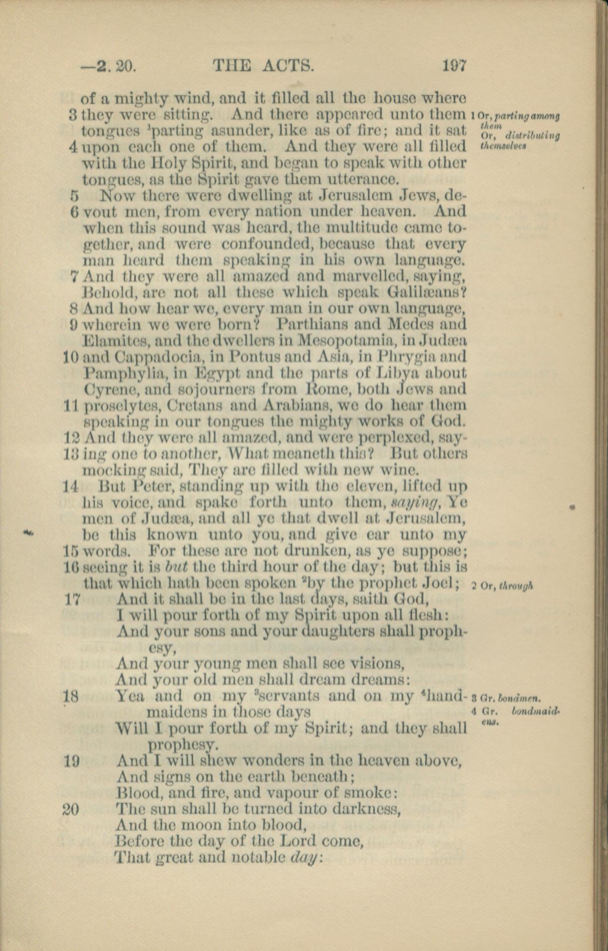 1881年New Testament 使徒行传 2 章 3 节到 2 章 20 节