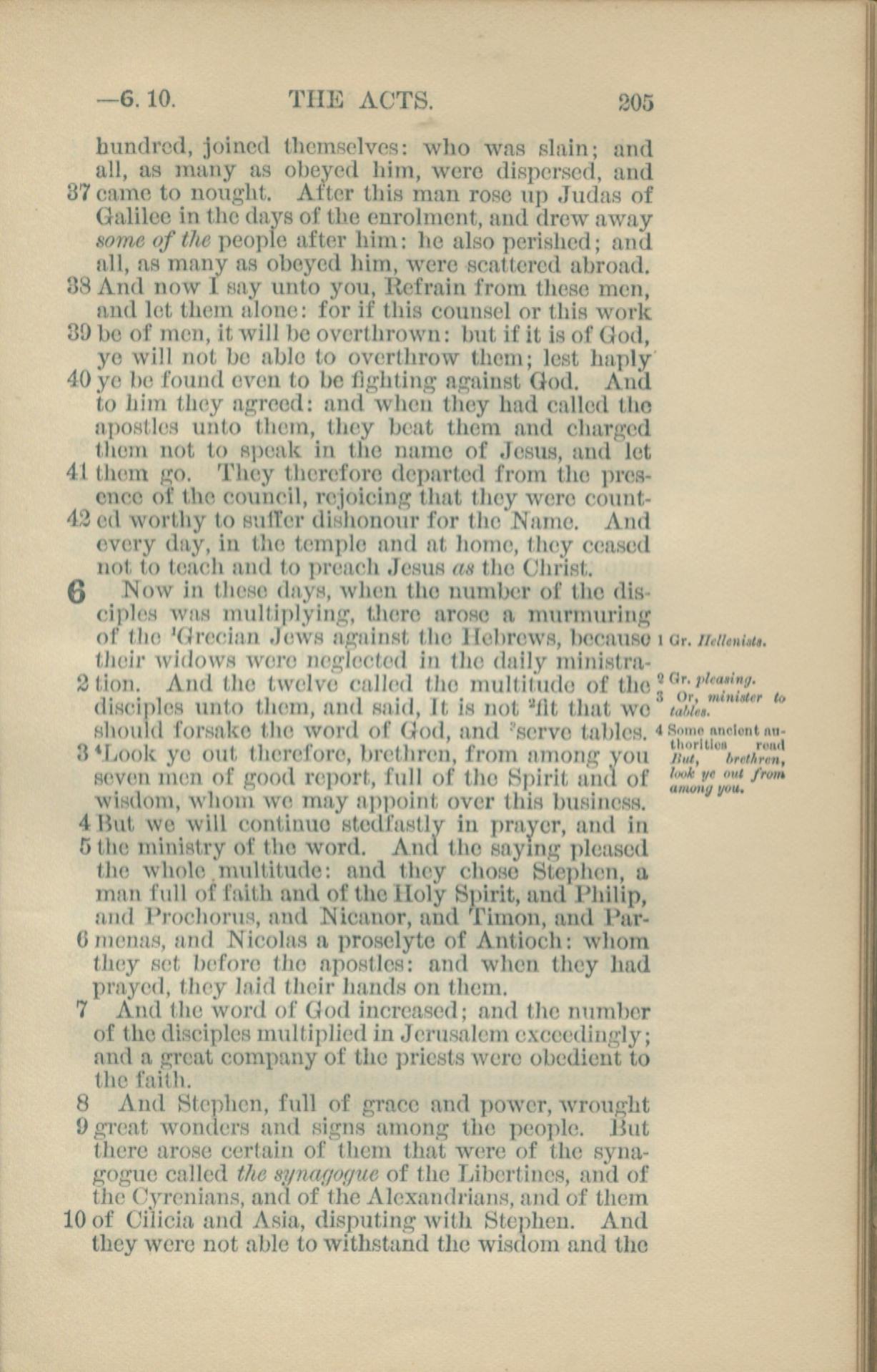 1881年New Testament 使徒行传 5 章 37 节到 6 章 10 节
