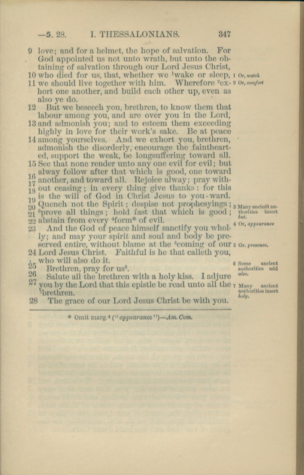 1881年New Testament 帖撒罗尼迦前书 5 章 9 节到 5 章 28 节