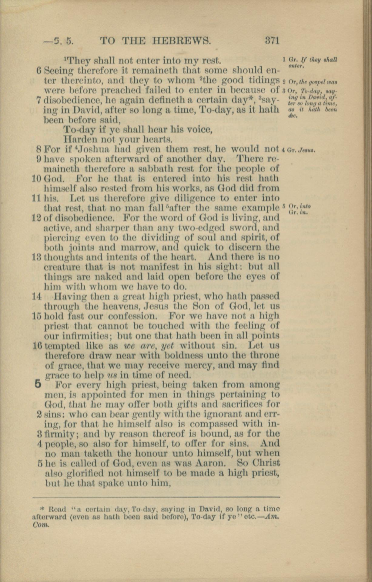 1881年New Testament 希伯来书 4 章 6 节到 5 章 5 节