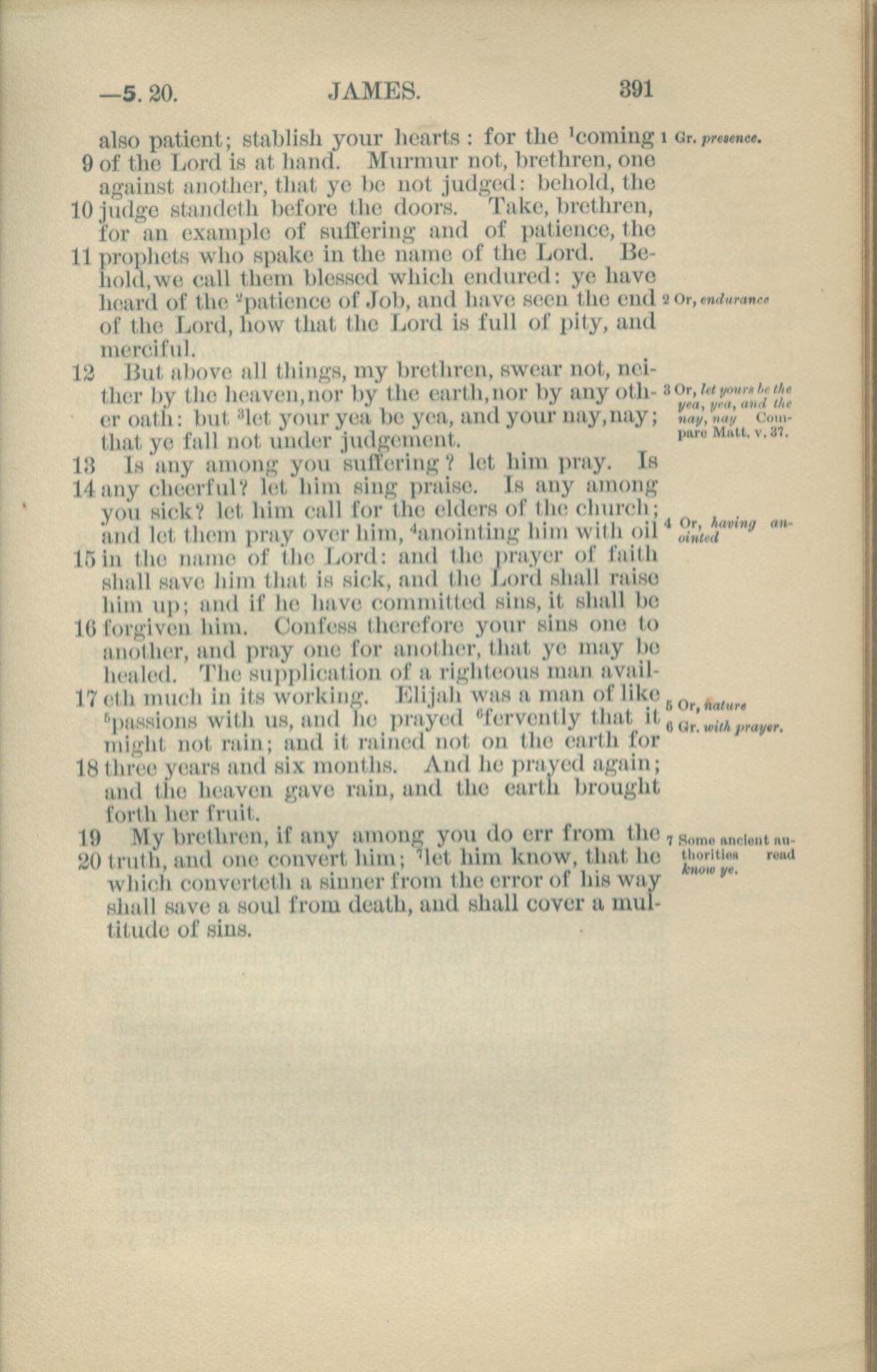 1881年New Testament 雅各书 5 章 9 节到 5 章 20 节