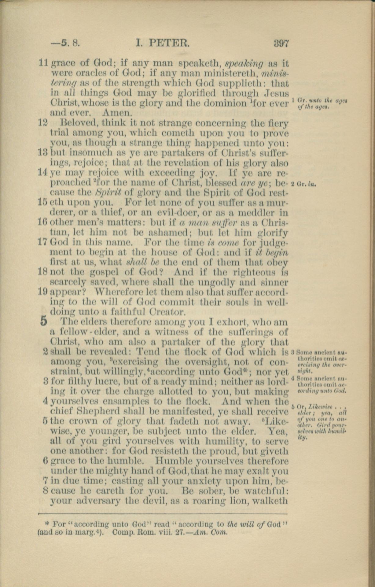 1881年New Testament 彼得前书 4 章 11 节到 5 章 8 节