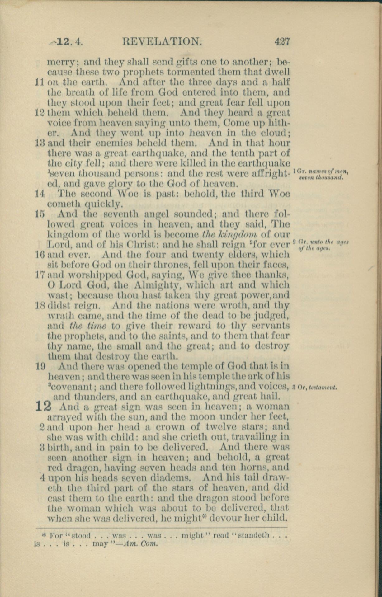1881年New Testament 启示录 11 章 11 节到 12 章 4 节