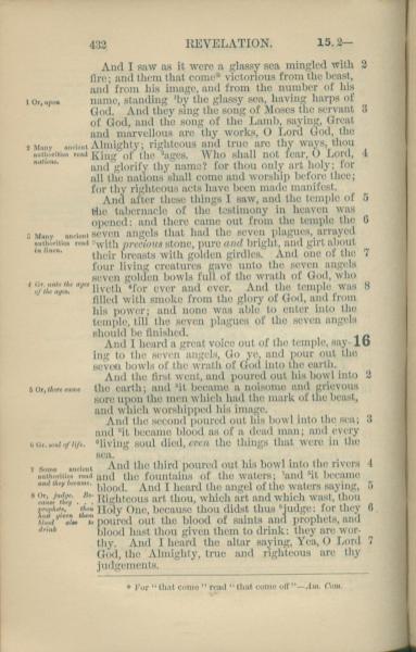 1881年New Testament 启示录 15 章 2 节到 16 章 7 节