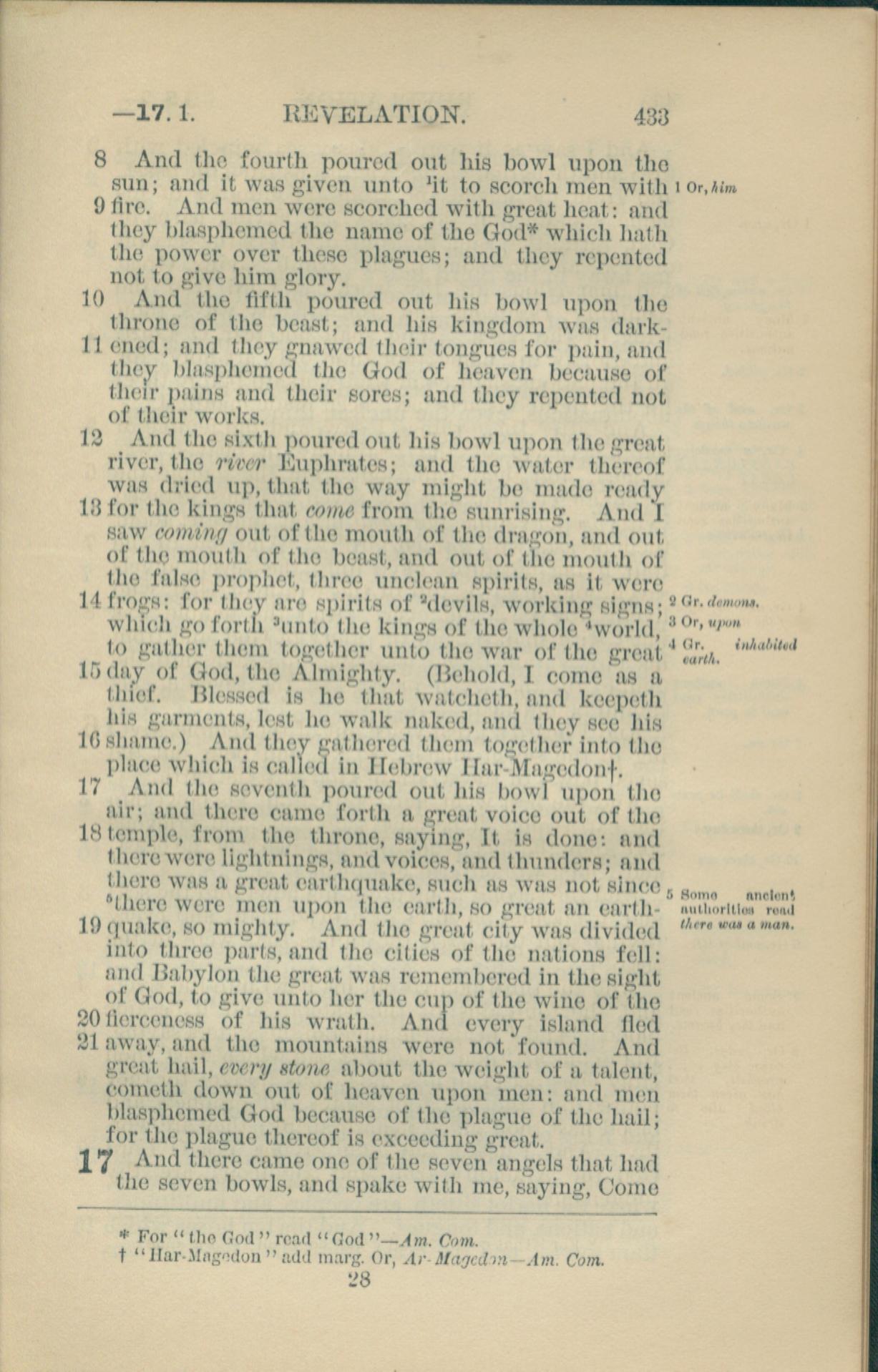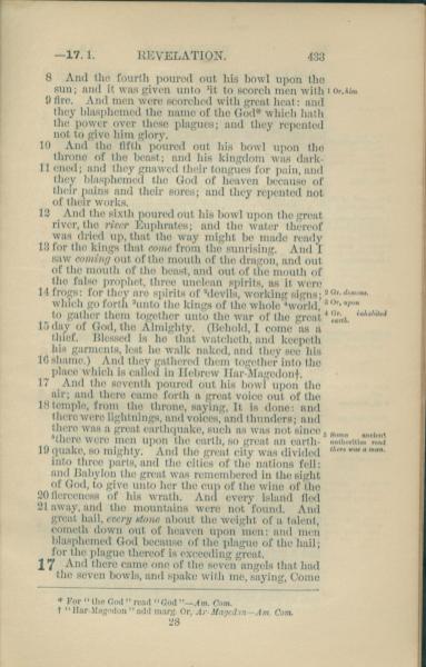 1881年New Testament 启示录 16 章 8 节到 17 章 1 节