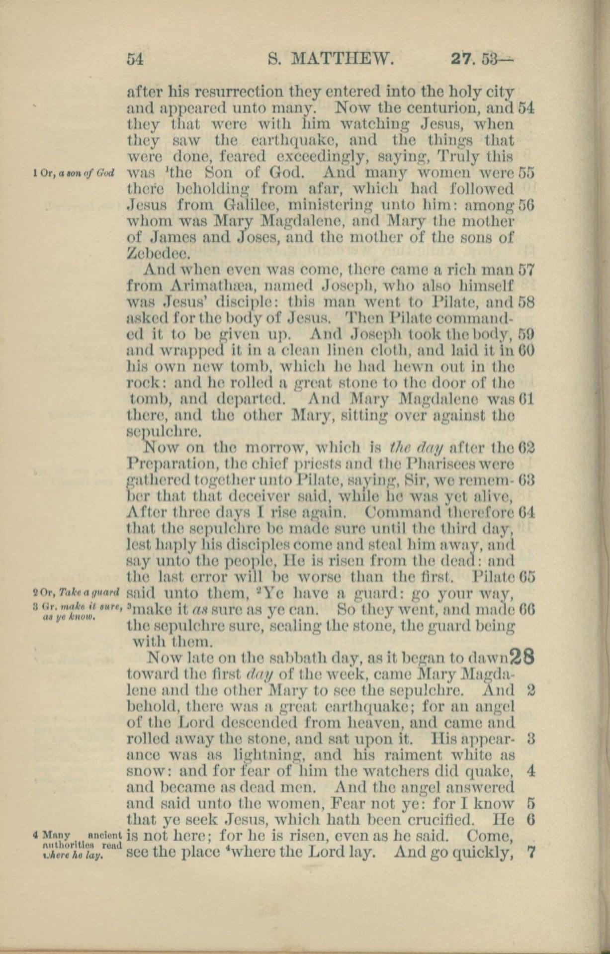 1881年New Testament 马太福音 27 章 54 节到 28 章 7 节