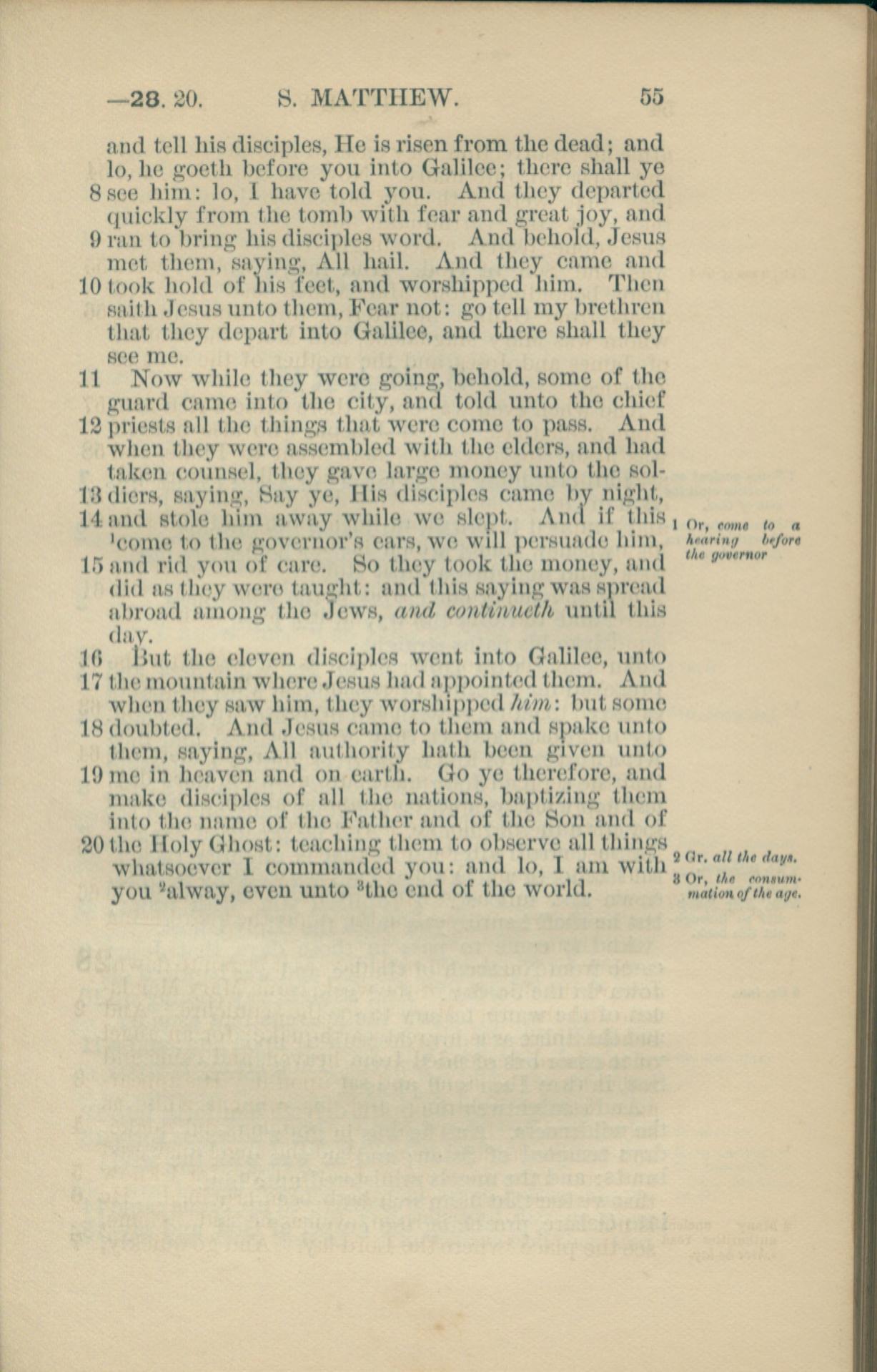 1881年New Testament 马太福音 28 章 8 节到 28 章 20 节