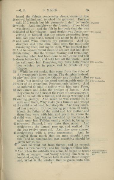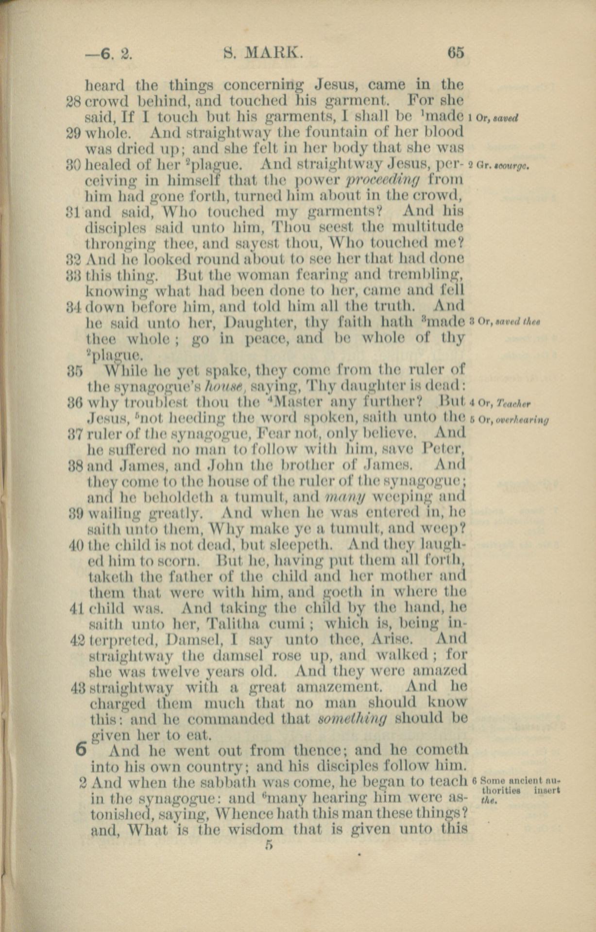 1881年New Testament 马可福音 5 章 28 节到 6 章 2 节
