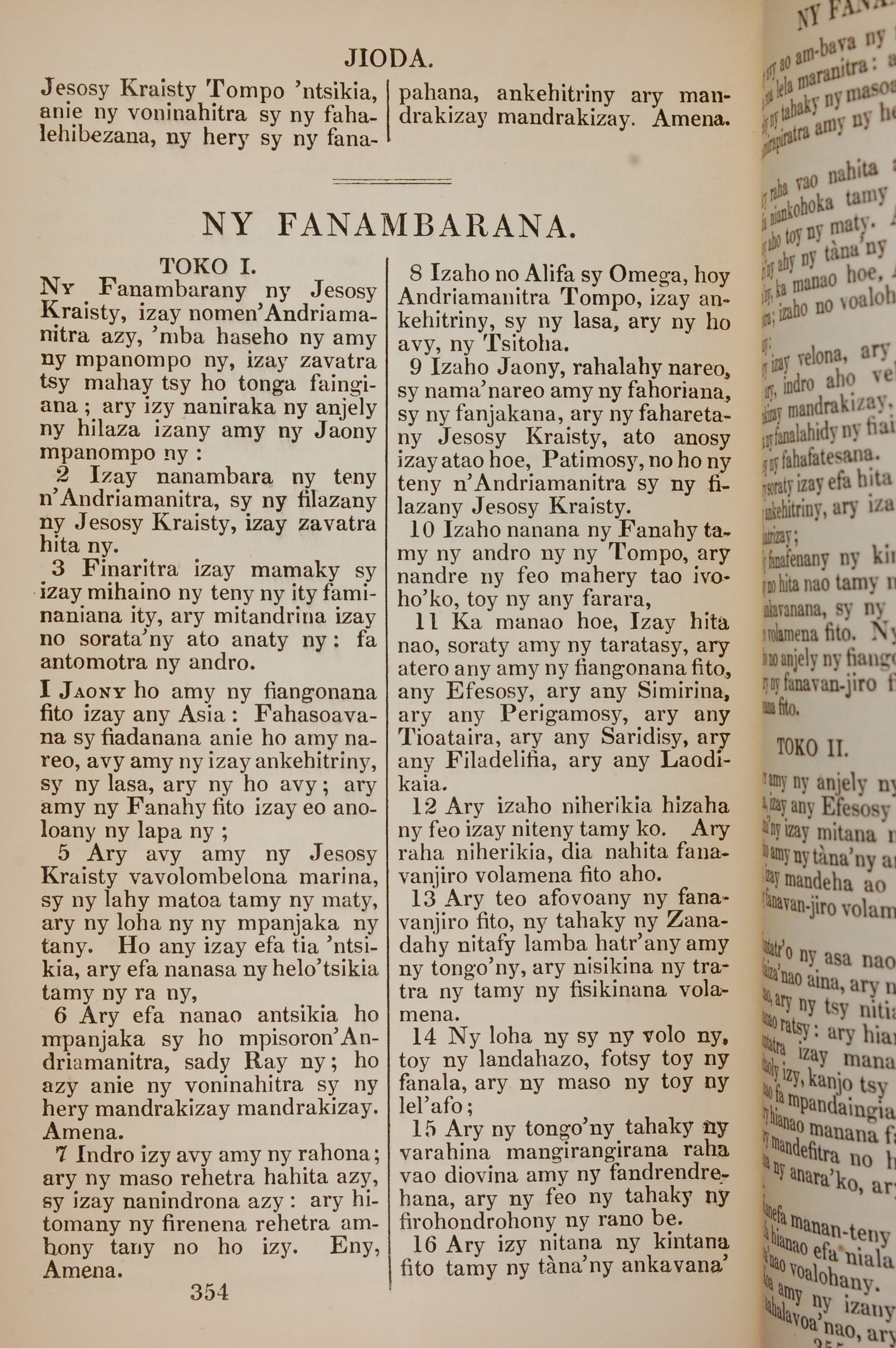 1830年Teny N'andriamanitra 启示录 1 章 1 节到 1 章 16 节