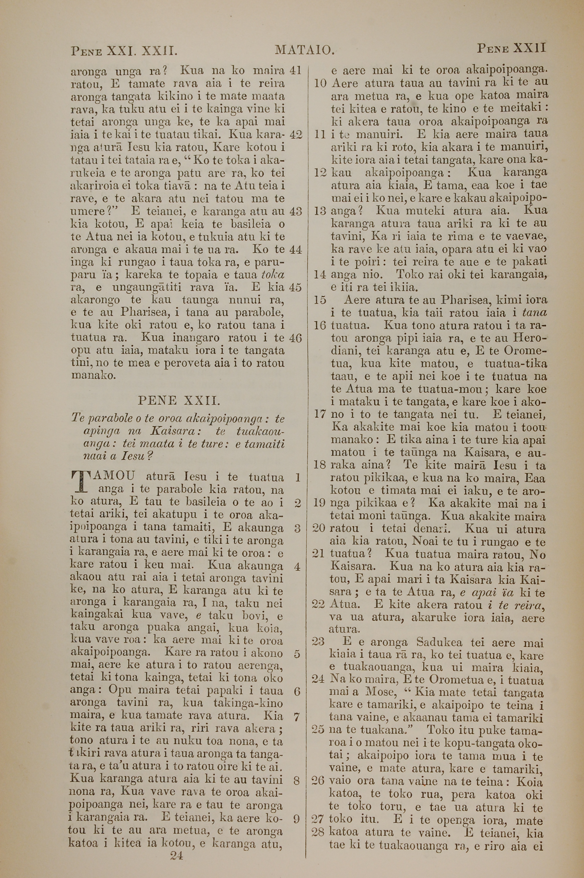 1851年BIBILA TAPU RA 马太福音 21 章 41 节到 22 章 28 节