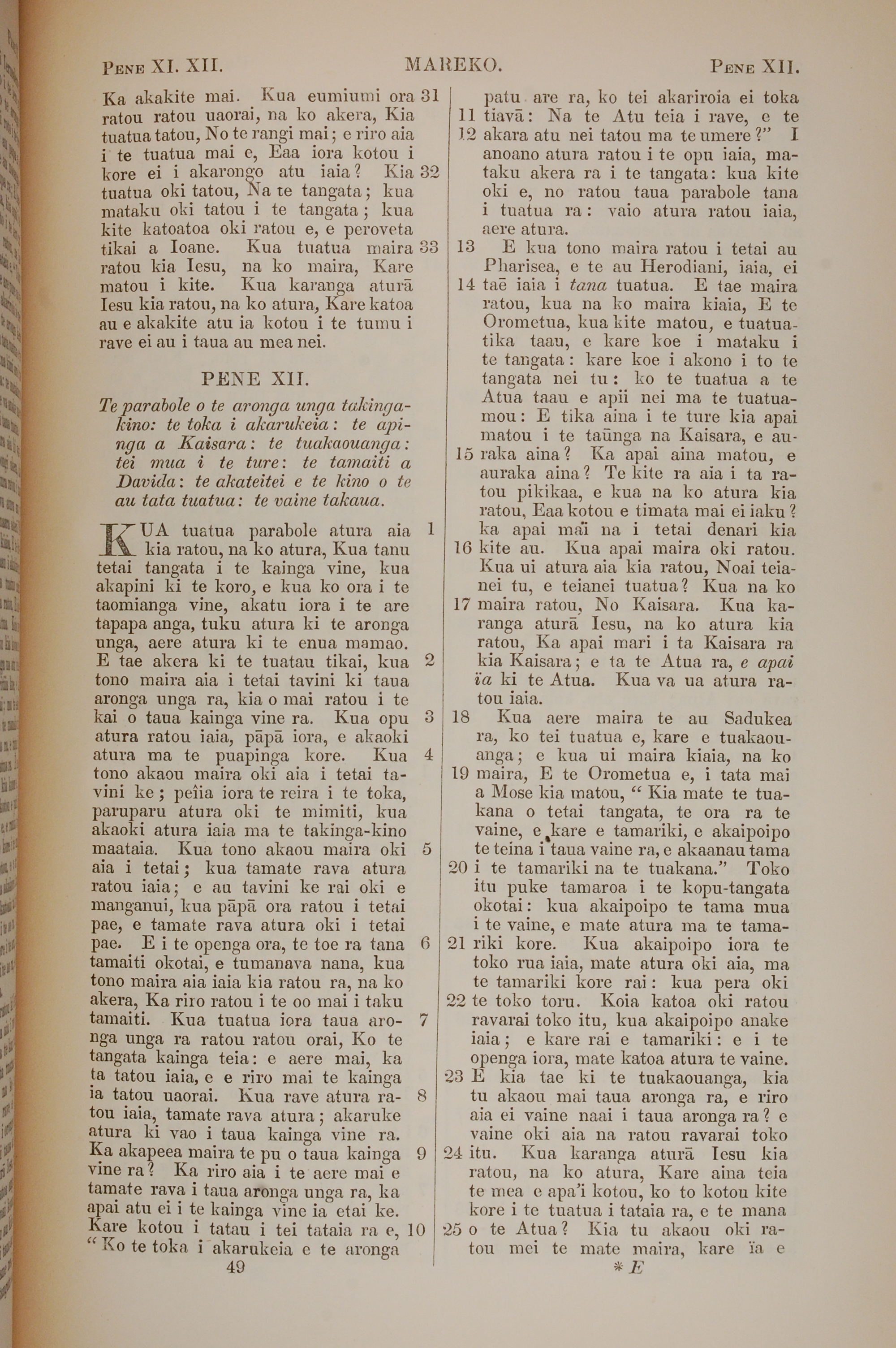 1851年BIBILA TAPU RA 马可福音 11 章 31 节到 12 章 25 节