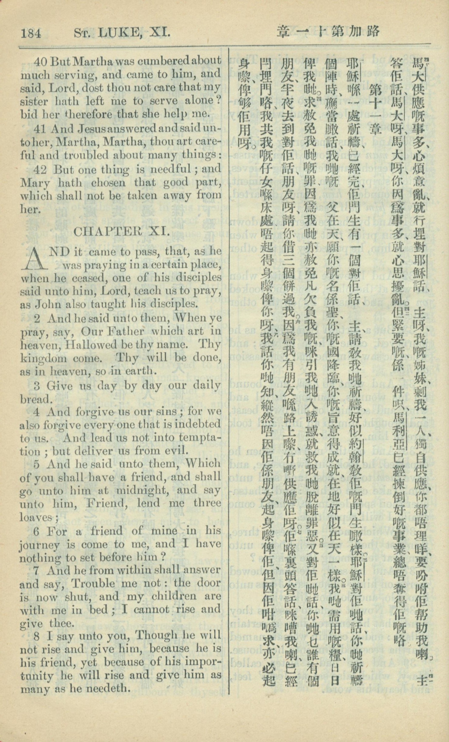1909年中西字新约全书 路加福音 10 章 40 节到 11 章 8 节