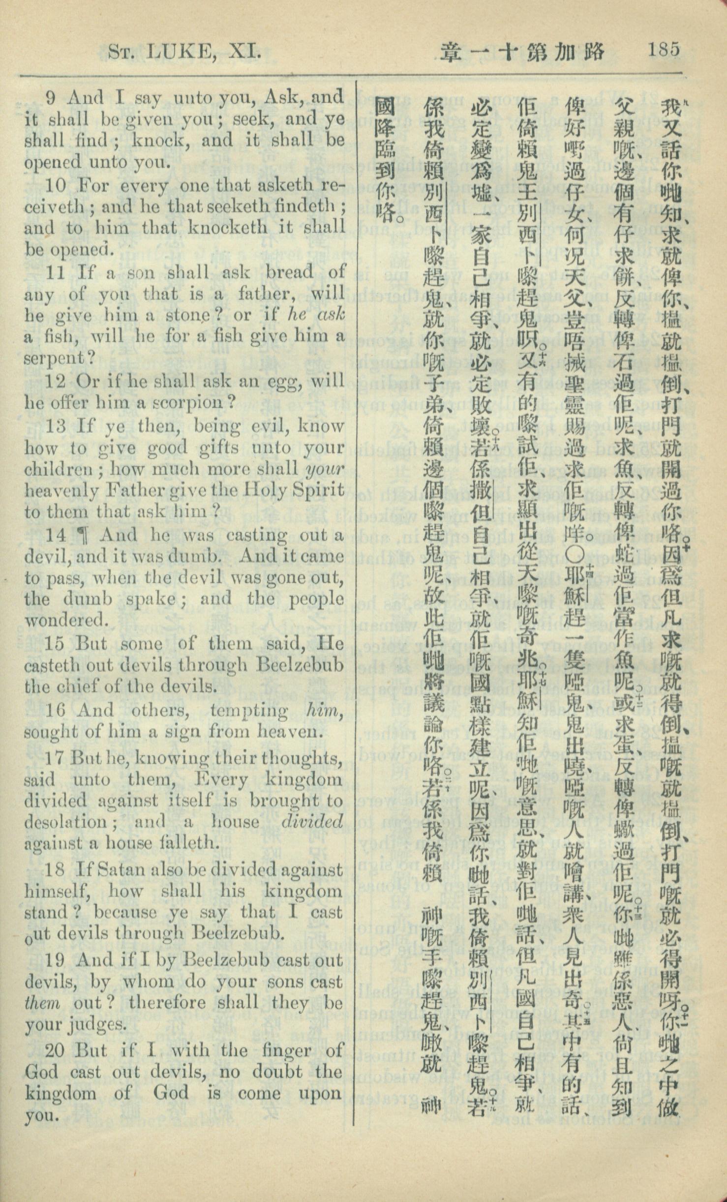1909年中西字新约全书 路加福音 11 章 9 节到 11 章 20 节