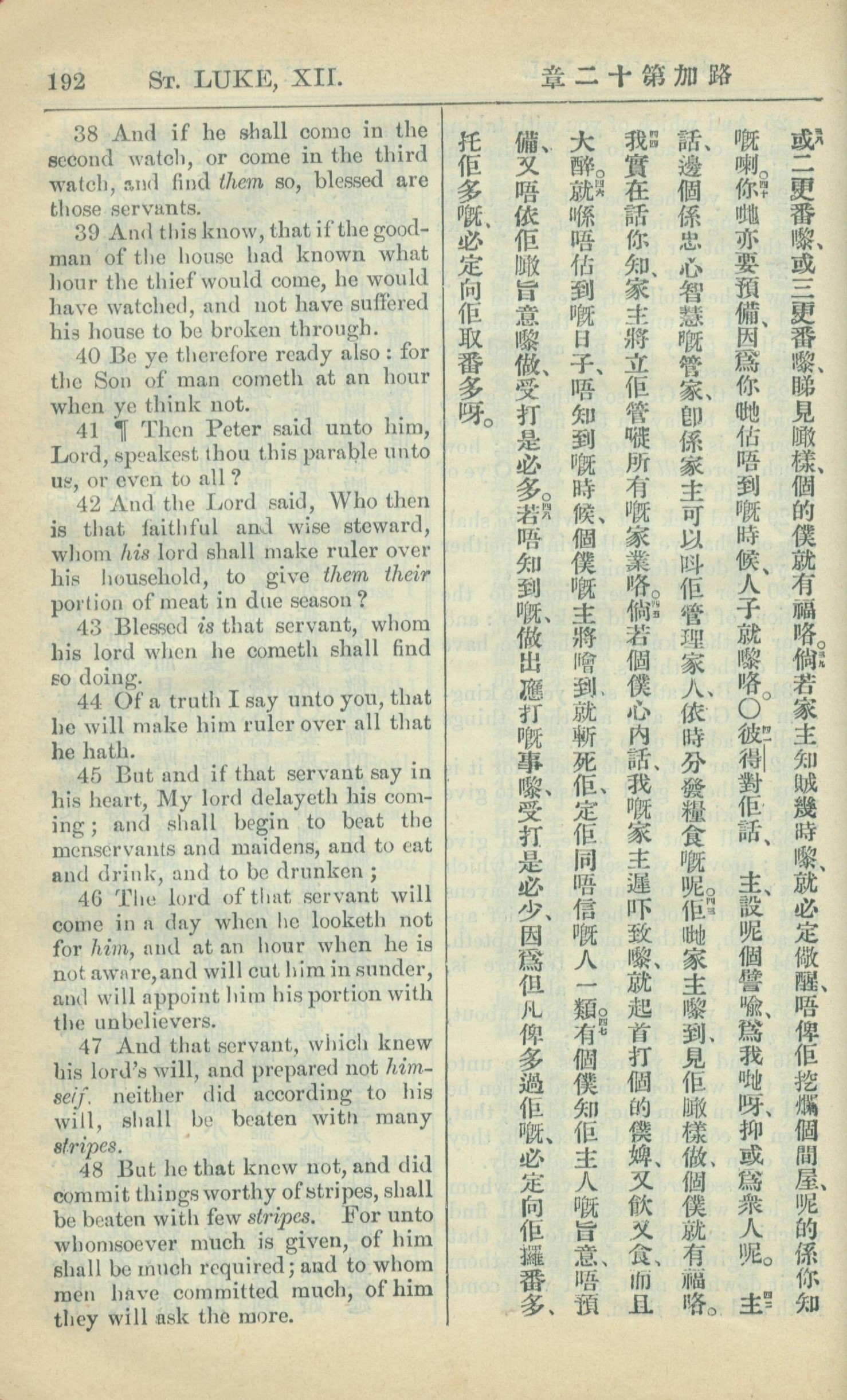 1909年中西字新约全书 路加福音 12 章 38 节到 12 章 48 节