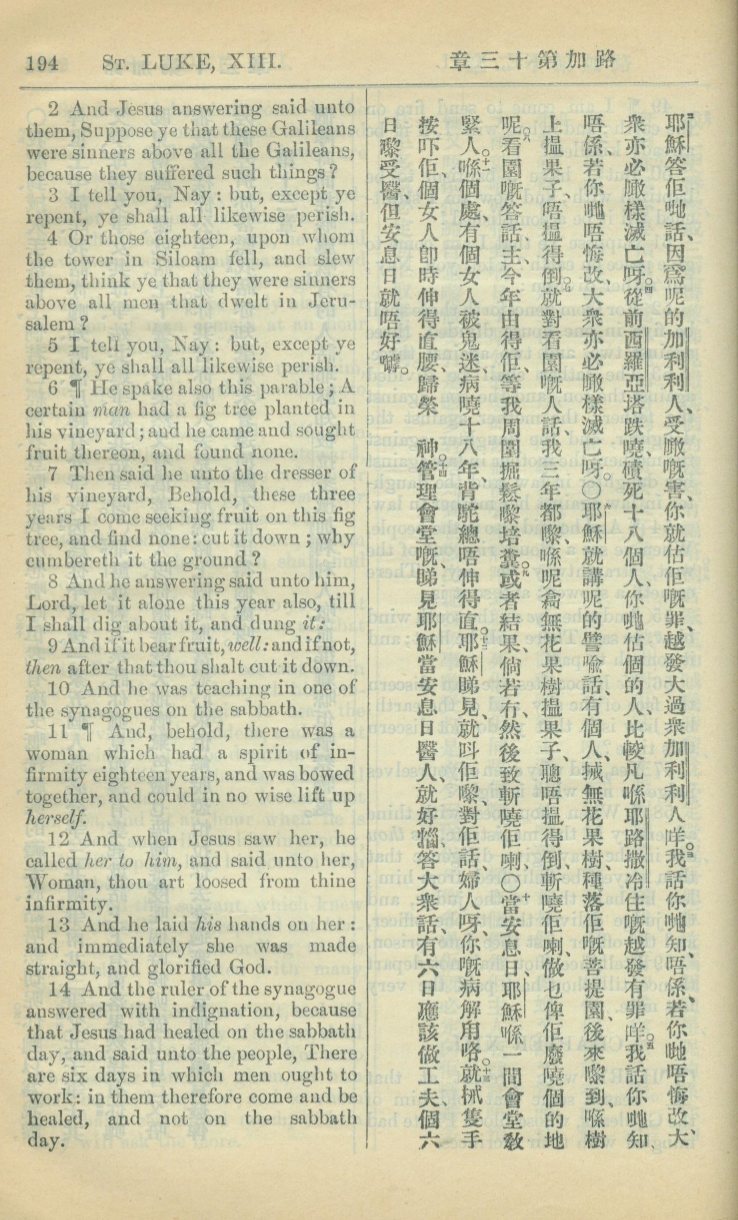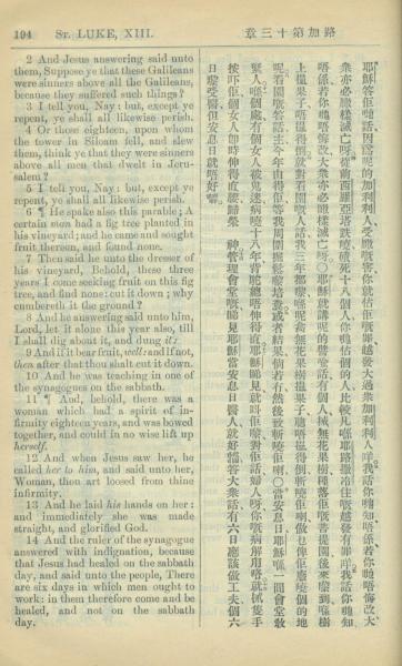 1909年中西字新约全书 路加福音 13 章 2 节到 13 章 14 节