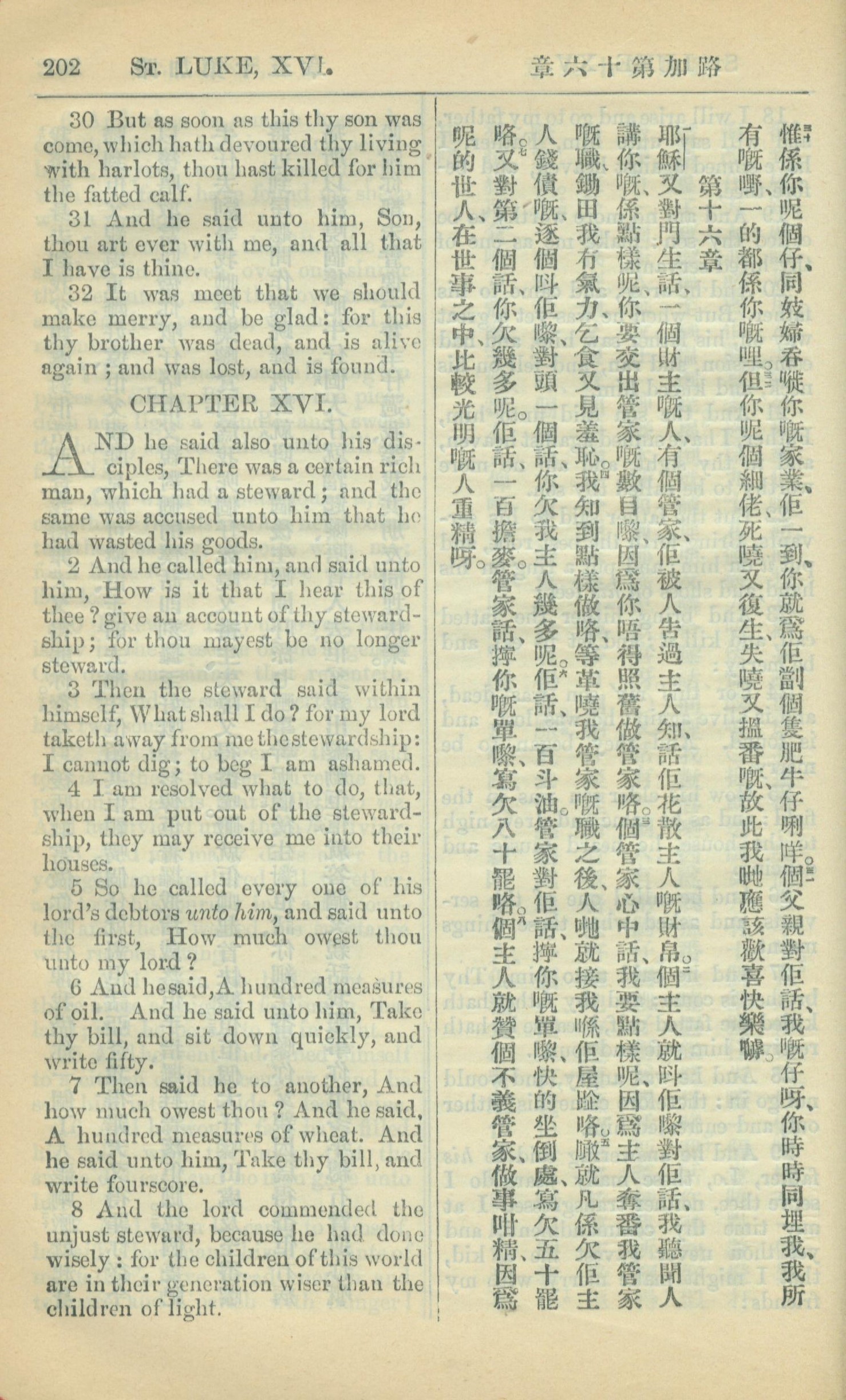 1909年中西字新约全书 路加福音 15 章 30 节到 16 章 8 节